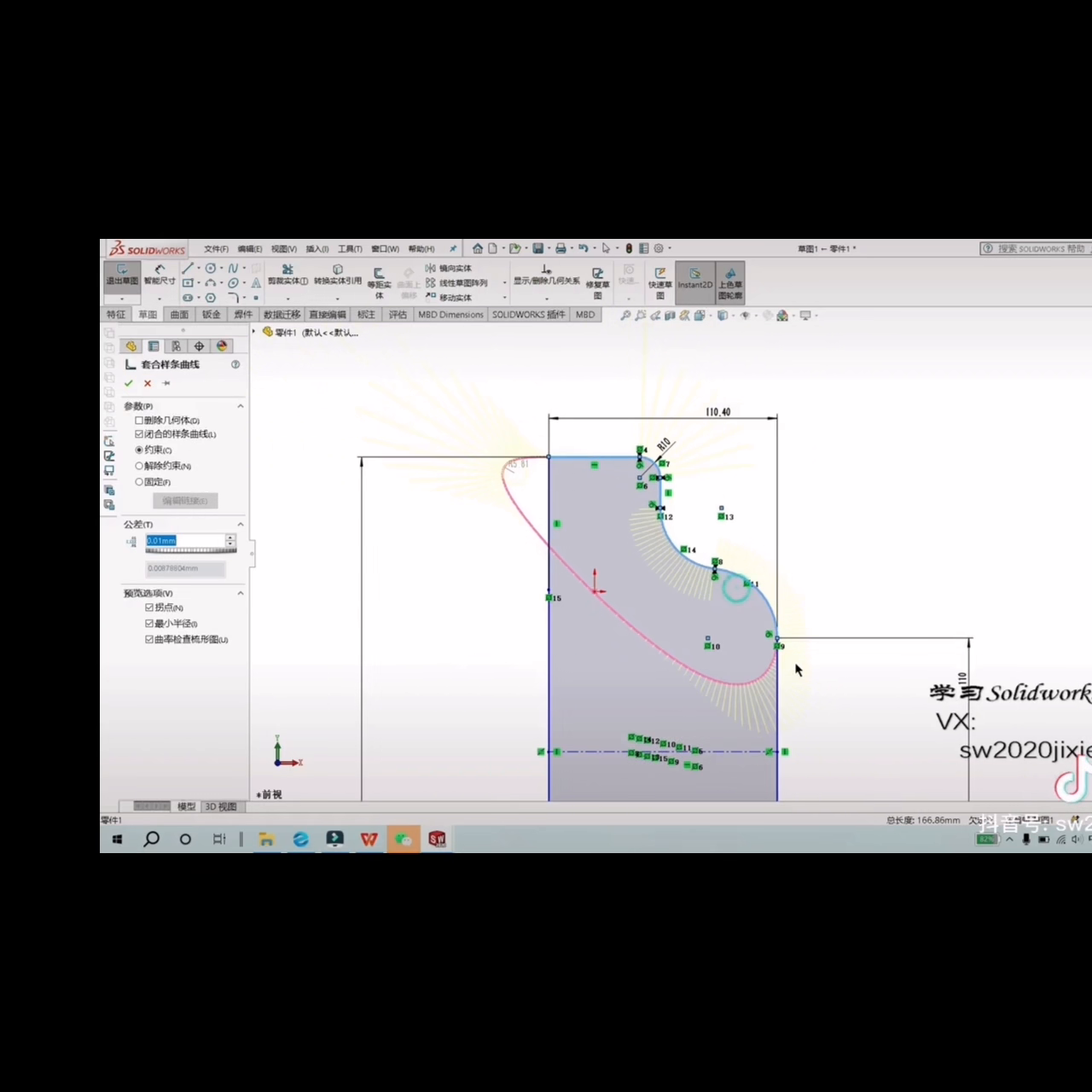 ·这个功能怎么去做呢?需要进草图里面选择草图草图绘制,进到草图里面以后找到工具,这里有一个选项叫样条曲线,工具选择里面的选项叫套盒样条曲线。
