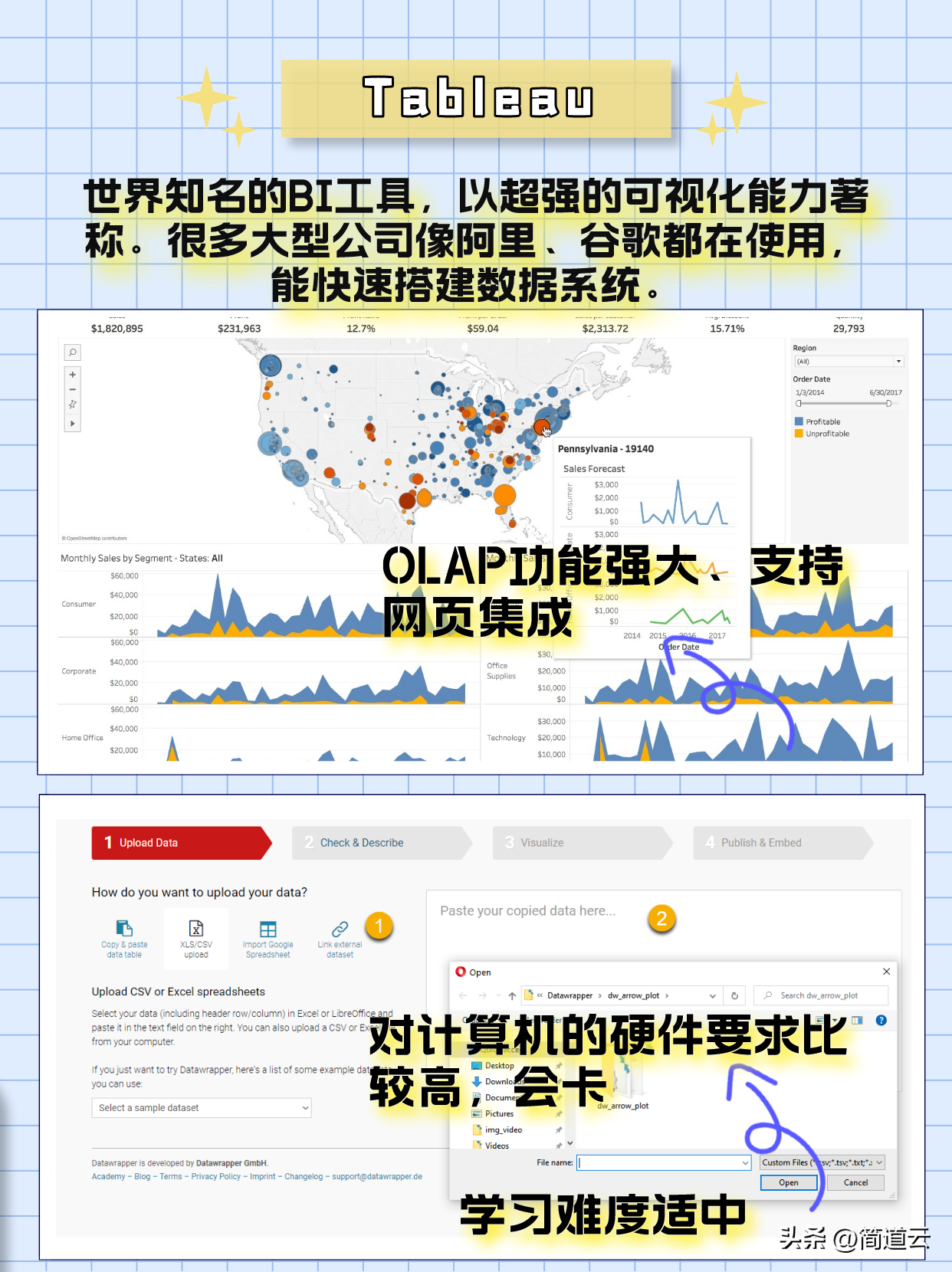 世界知名的BI工具,以超强的可视化能力著称。很多大型公司像阿里、谷歌都在使用,能快速搭建数据系统。