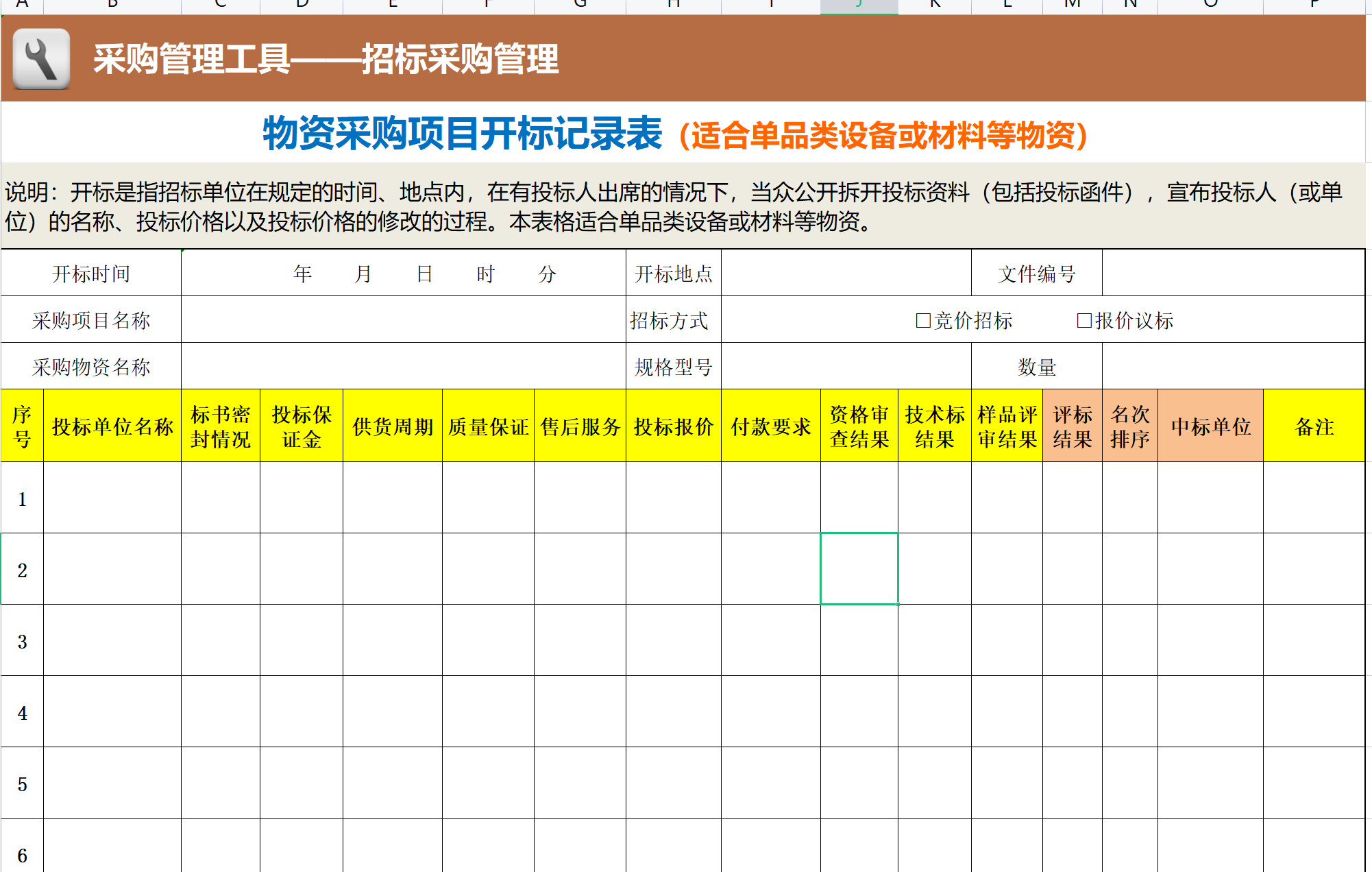 Excel开标评标系统支持记录开标的时间、地点、评标委员会成员等信息,方便后续查询、审核和监督。系统可以将录入的开标记录保存下来,提供方便查看、管理与复查。