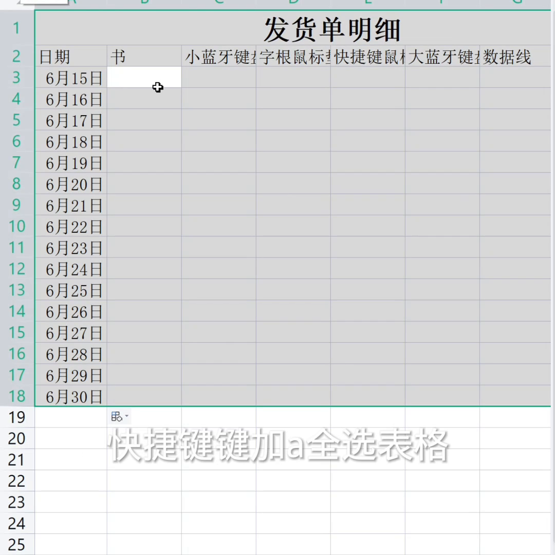 ·如何把列宽调宽?把鼠标放在a和b相邻的单元格,鼠标指针变成向两个方向指的箭头,按住鼠标从左向右拖拽至合适的位置,全部显示出来就OK了。把光标放在下一个单元格六月十六,平时是不是这么说的:六月十七,这样效率太低了。