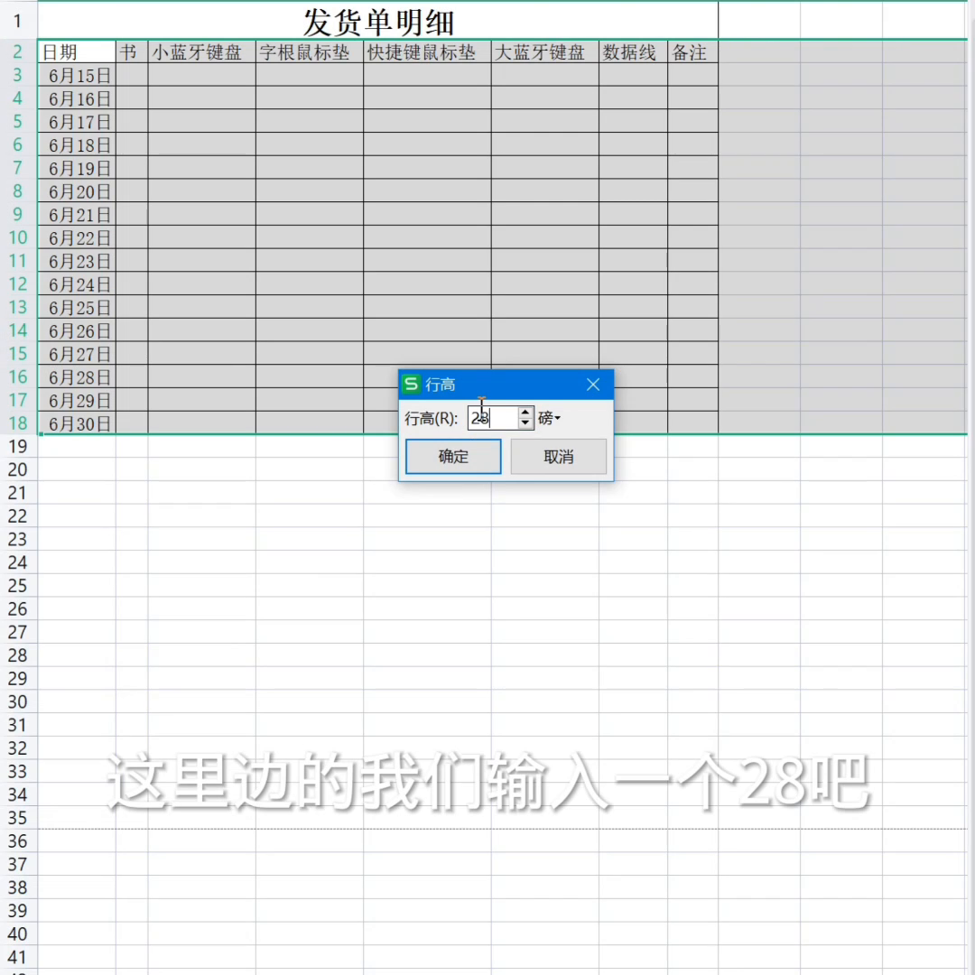 ·6就是把光标放在任意一个6月28日号上面45都可以。鼠标右键点击行高,6月2家会发现目前是14,那我们看见下边它是有一个打印分页符的这根线,14感觉给它调到一个18差不?把它选中之后鼠标右键点行高,这里边输入一个28,点击确定。此时看一下效果,刚刚好。