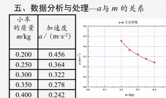 以a为纵坐标以质量 m为横坐标。根据电子表格,可以做出am 图像