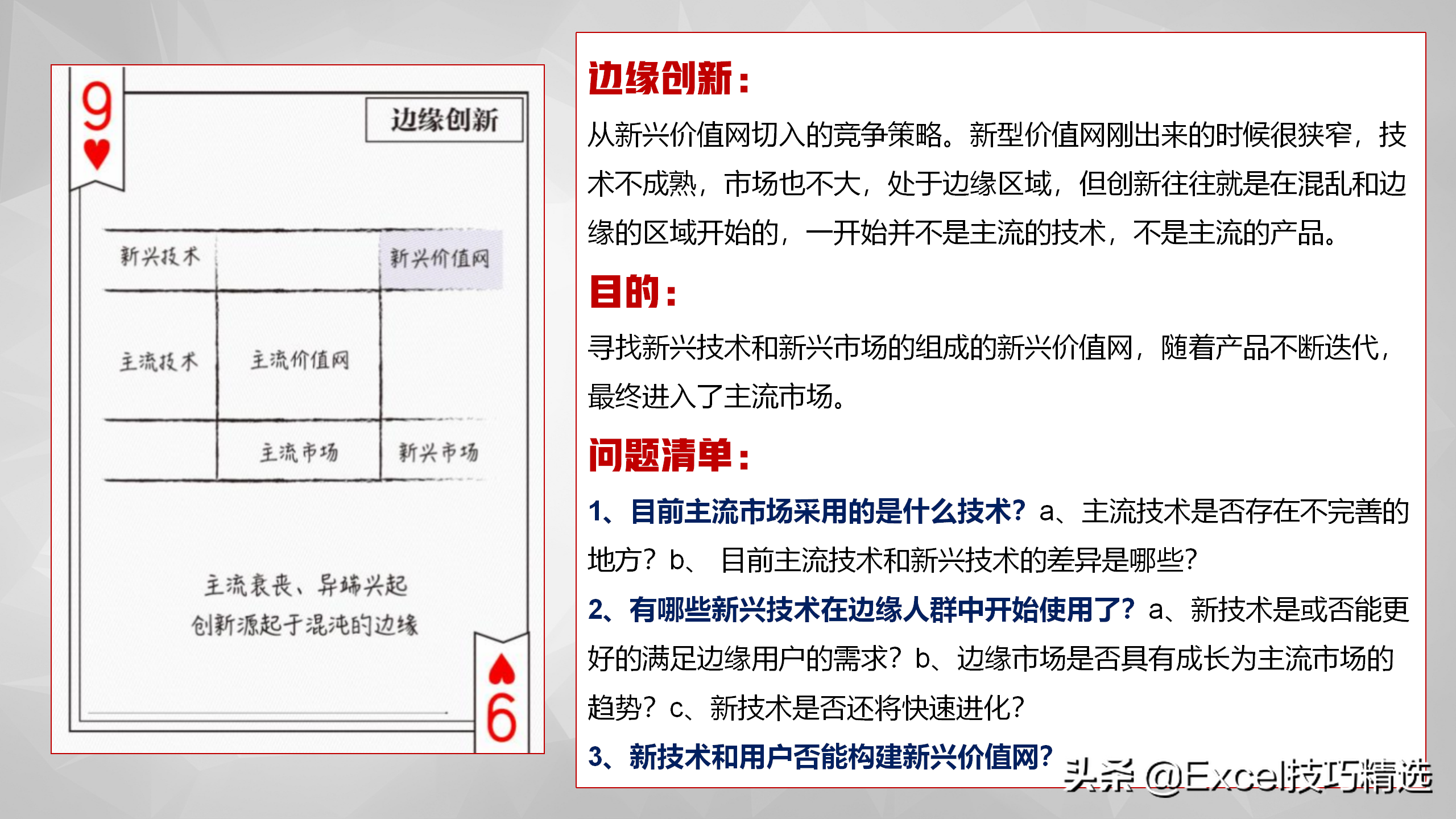 从新兴价值网切入的竞争策略。用来寻找新兴技术和新兴市场的组成的新兴价值网,随着产品不断迭代,最终进入了主流市场;