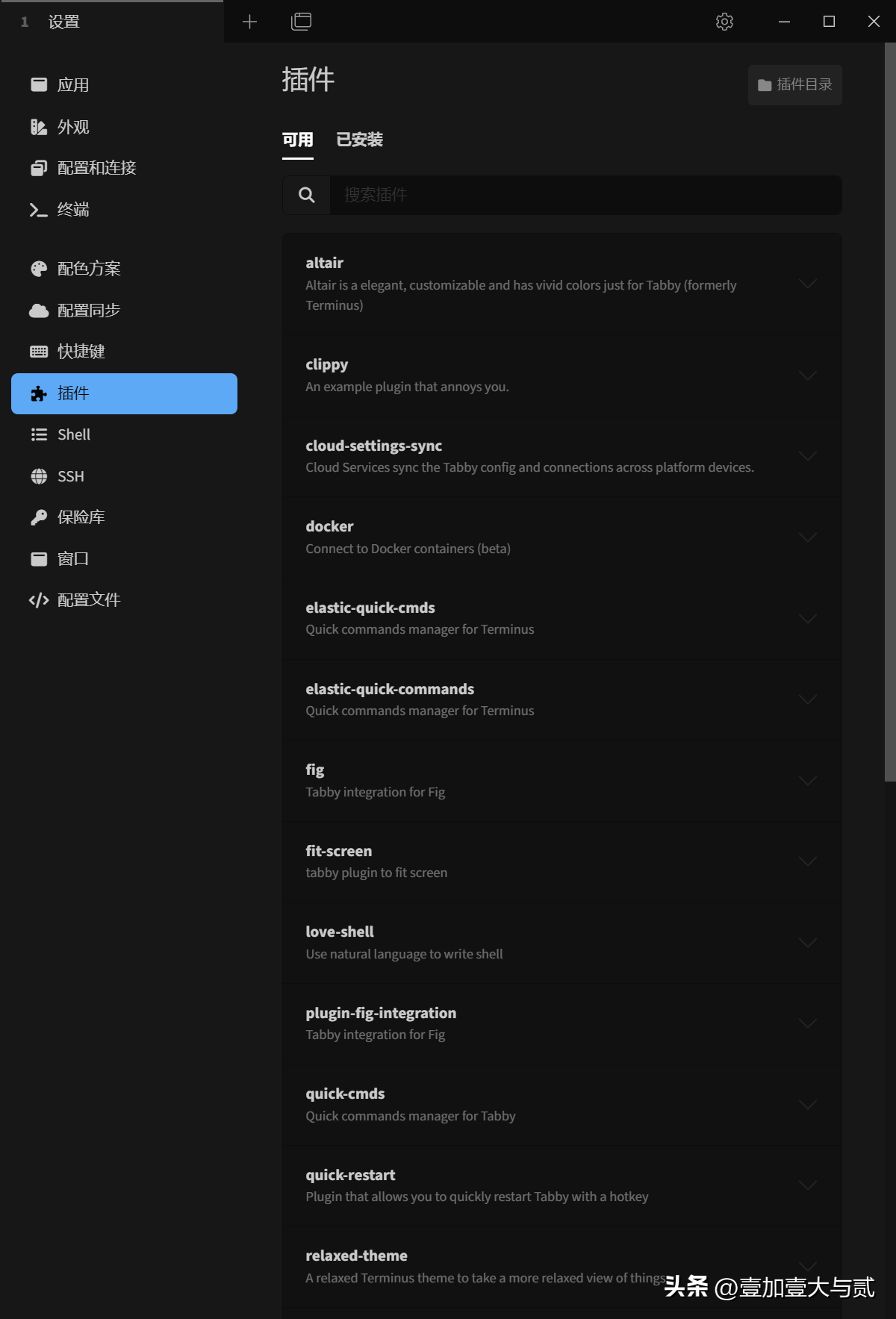 插件和主题可以直接从 Tabby 中的“设置”视图安装。