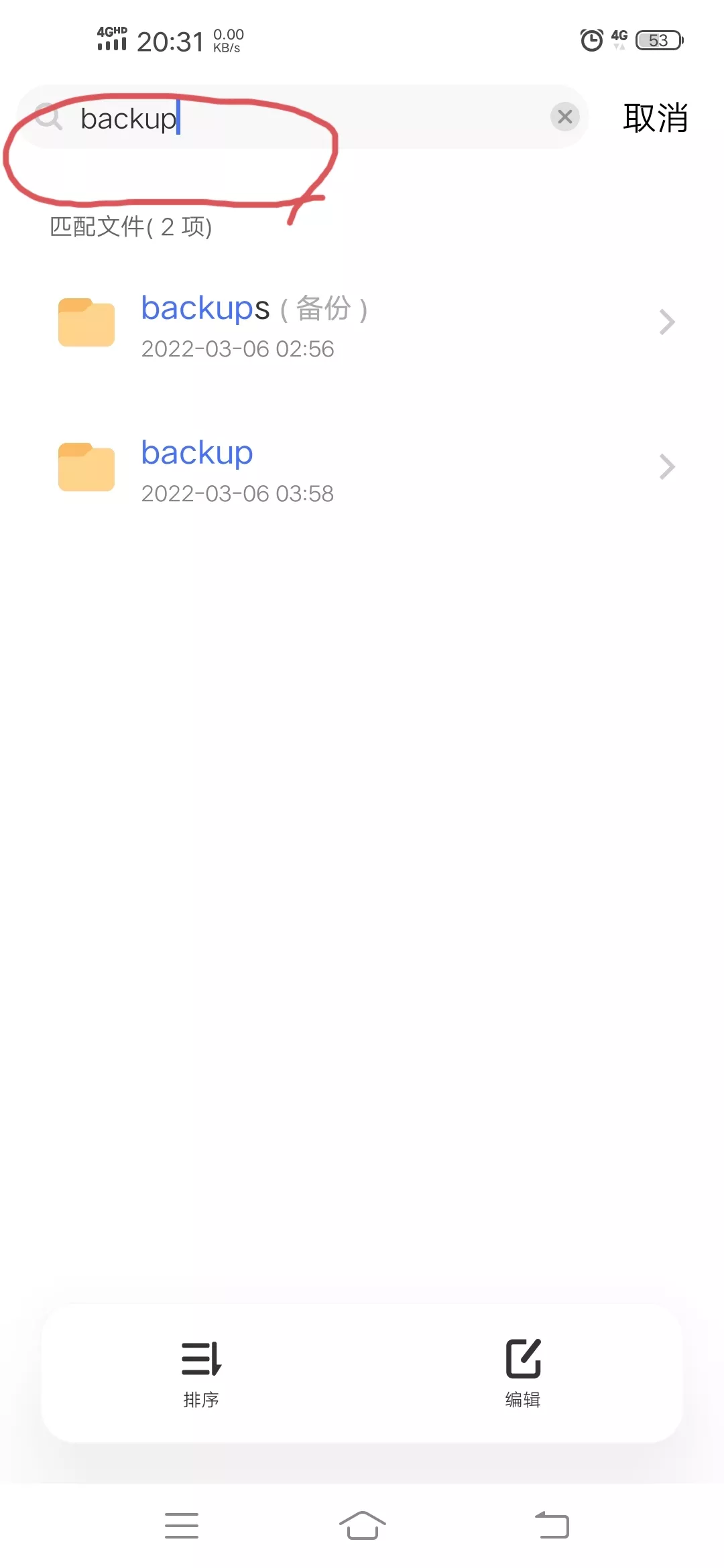 输入backup(备份文件)点搜索、全选所有搜索出来的文件全部删除。