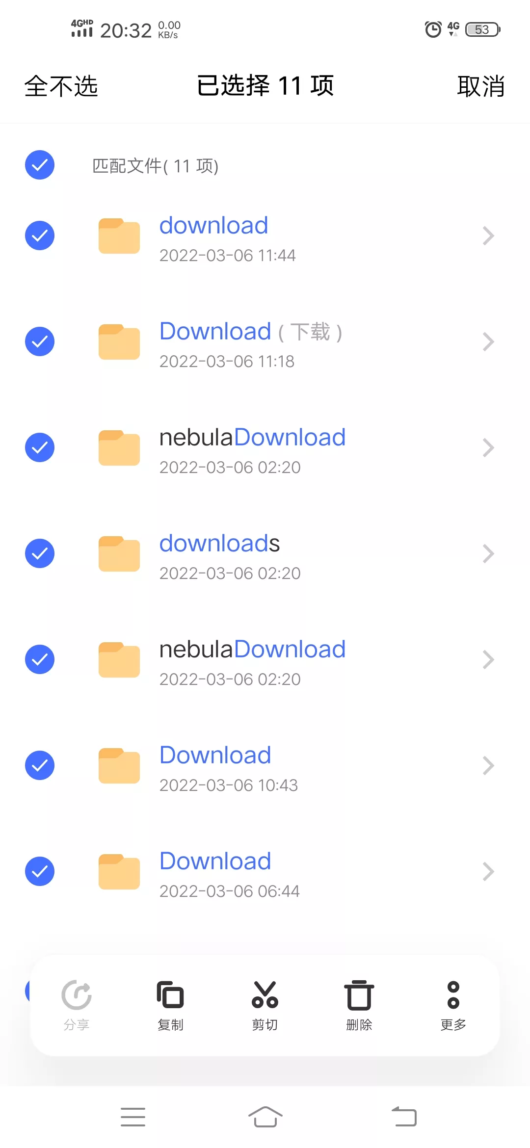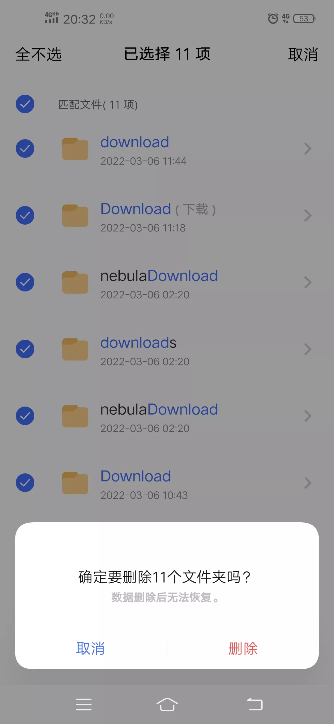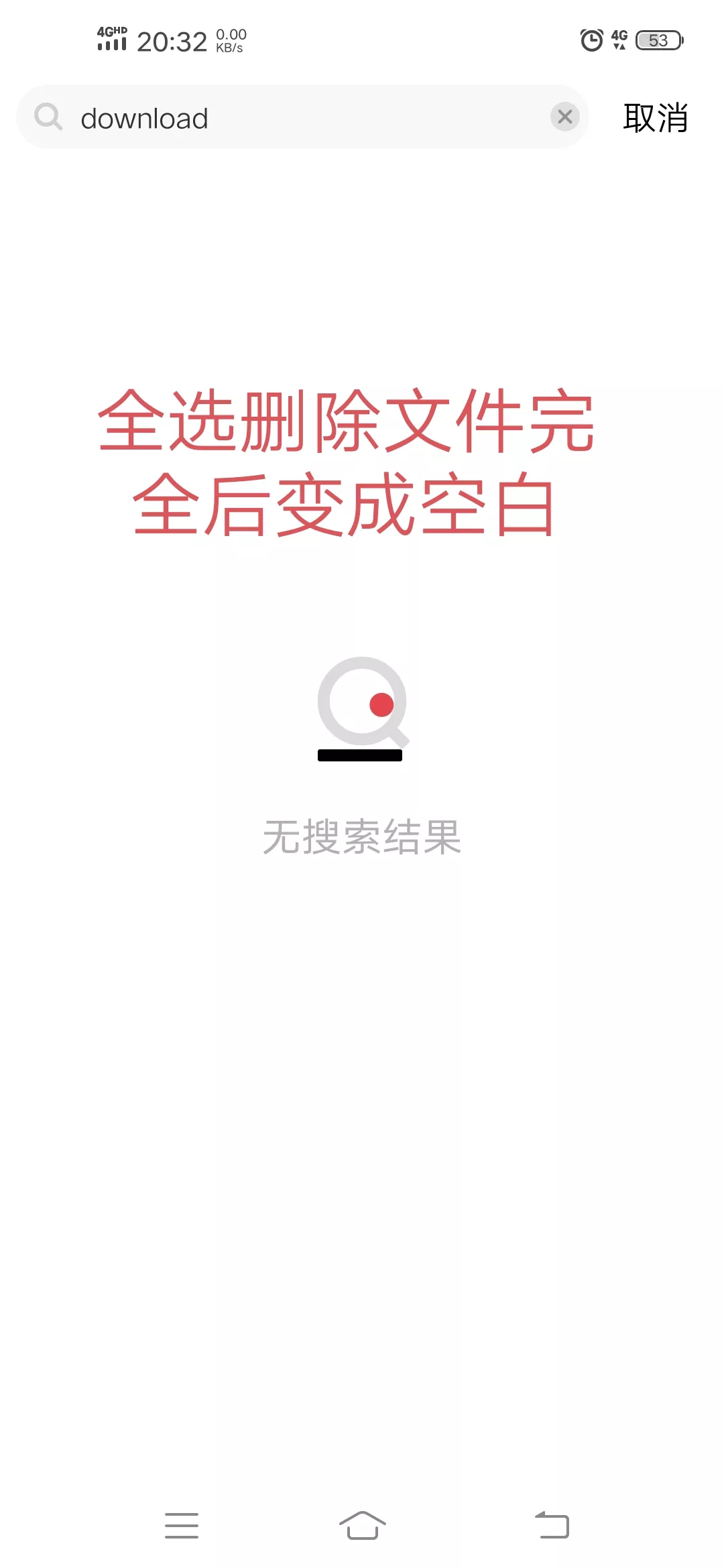 输入download(下载目录)点搜索、全选所有搜索出来的文件全部删除。