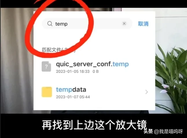 首先打开手机里面的文件管理 ,然后点击进入 ,再找到上面这个放大镜, 输入英文字母temp ,这个是一个临时文件的意思, 之后点击后面的搜索, 这个时候出来的都是手机里边的一些临时文件, 它会占用我们手机的大量内存空间 ,咱们把它选中之后, 再点击删除就可以了。