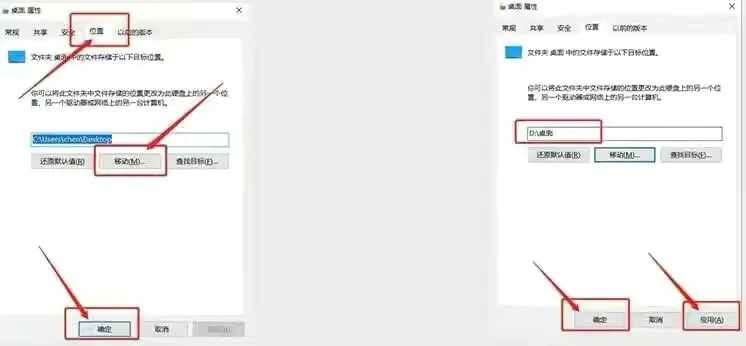 默认情况下在C盘中,然后我们点击路径下方的移动选项准备更改文件路径。选中我们刚刚新建的桌面文件夹,然后在回到之前的窗口,点击应用和确定。 如果你的桌面本身就有文件的话,那么系统会帮你移动,我们只需等待完成即可。