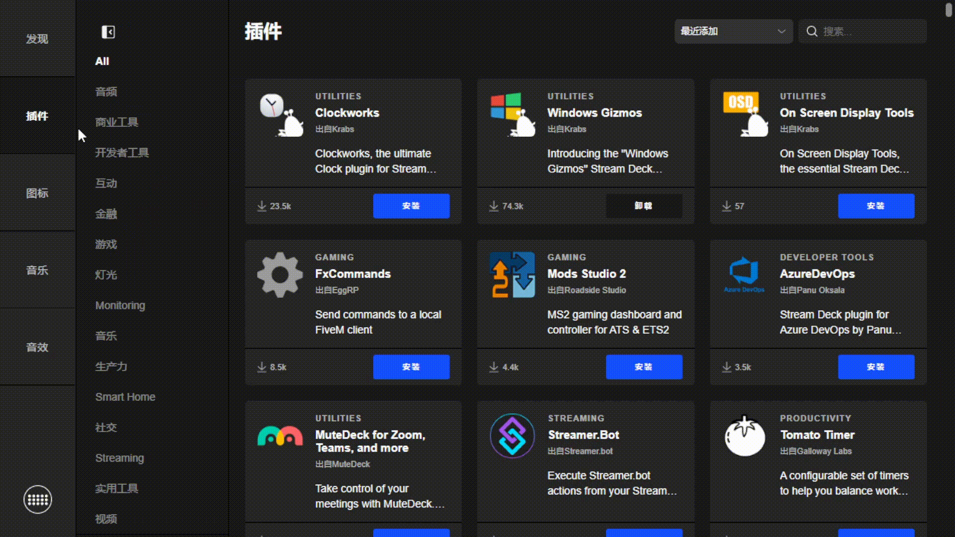 在 Stream Deck 的商店中,有上百款插件,有Elgato和海盗船自家的软件,譬如Elgato 麦克风混音器、采集卡驱动、灯光控制等软件的插件或 iCUE 以及视频创作、直播、编程、办公等各种领域软件,譬如 OBS、Teams、Excel、PPT、Photoshop 等插件支持。因为 Stream Deck 商店和苹果的 App Store 一样开放 SDK 给大家自己开发和上传插件,因此有不少第三方插件同样可以下载,并一直持续更新和增加。