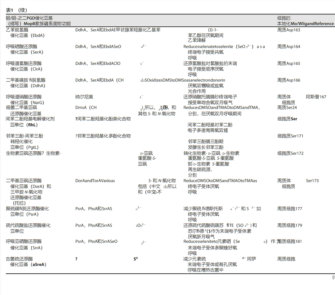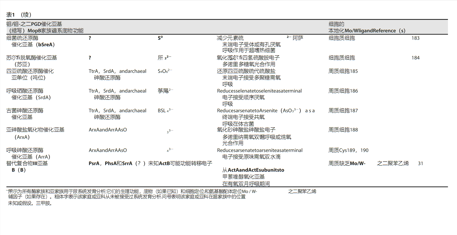 其中最著名的成员是硝酸还原酶催化亚基(NarG),它使用As作为Mo/W-二核苷酸辅因子的配体。还有其他催化亚基属于该分支,包括高氯酸盐还原酶(PcrA)、氯酸盐还原酶(ClrA)和硒酸还原酶(SerA),它们也属于MopB超家族。