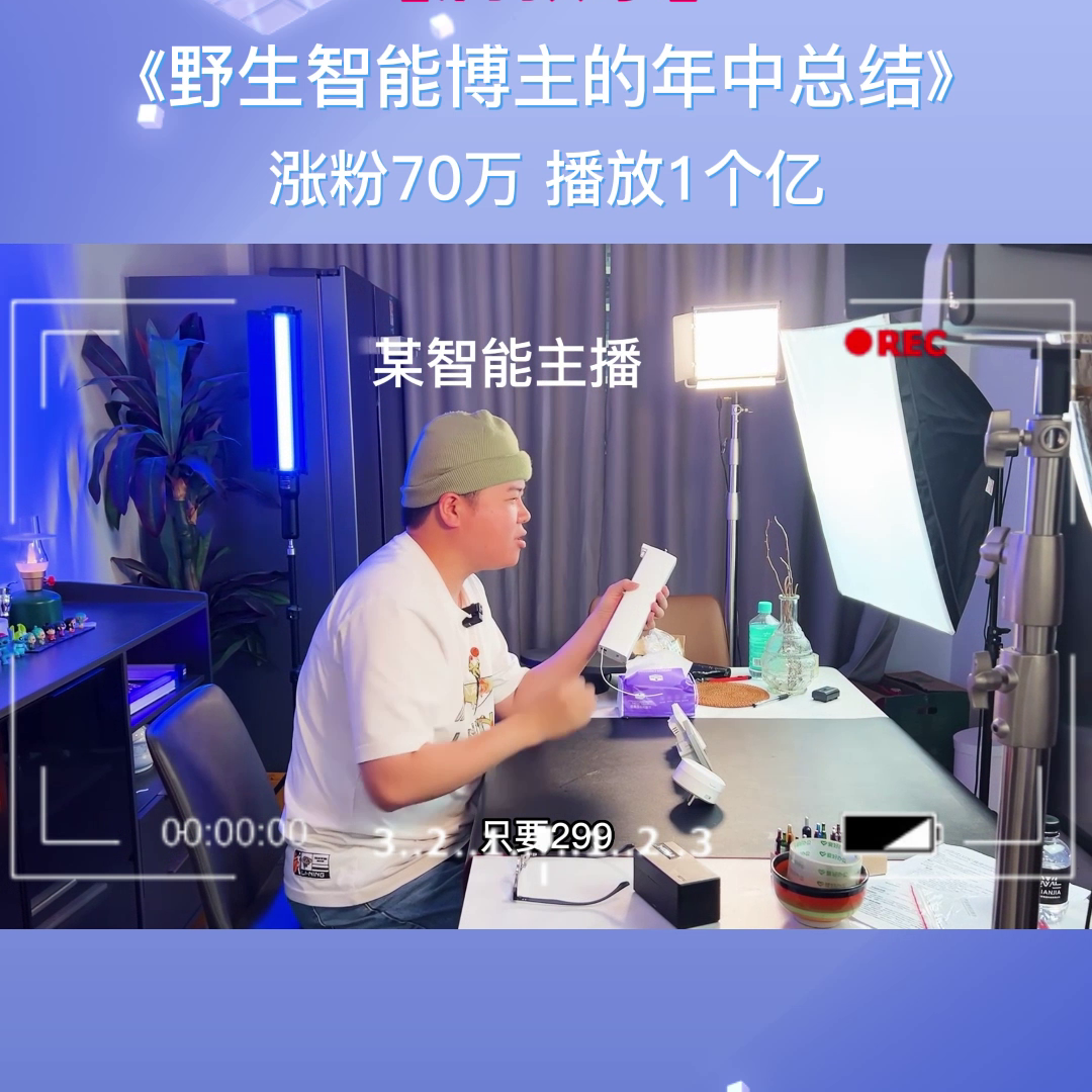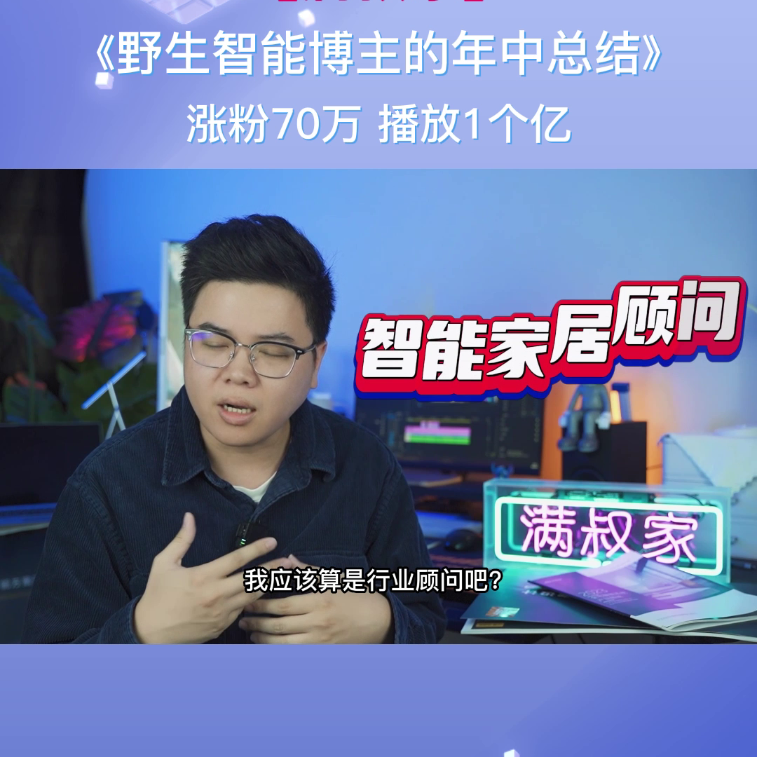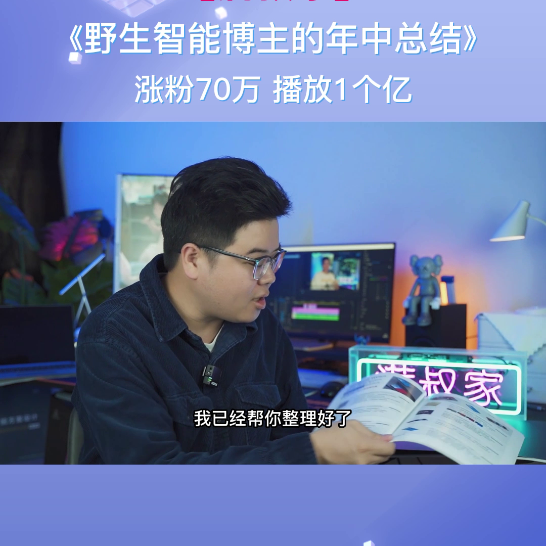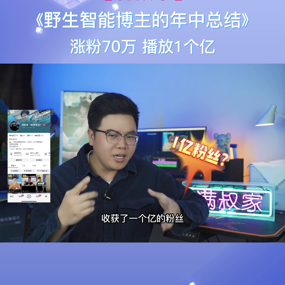 满叔家:《野生智能博主的年中总结》,涨粉70万播放1个亿。