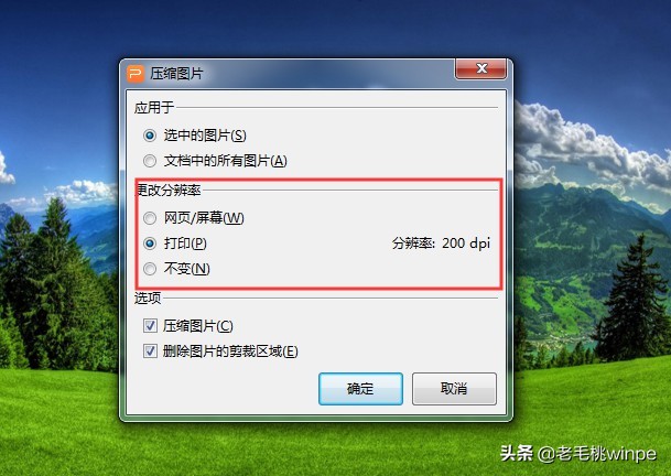 2、 弹出图片压缩设置页面时,根据自己的需要进行图片大小设置,点击“确定”就可以完成图片大小压缩了。