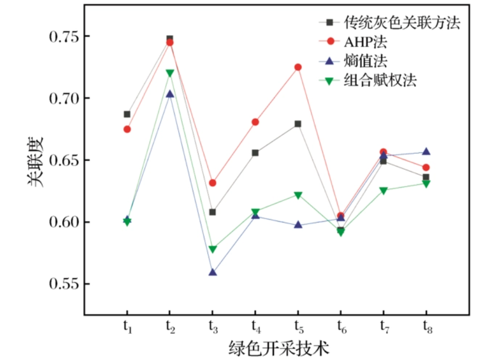 (2)建立灰色关联度矩阵,计算各指标的灰色关联度。