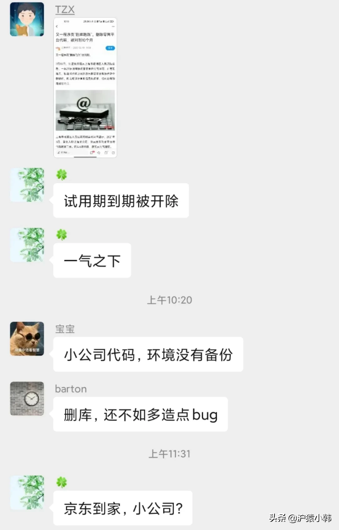 事情源于近期热点:上海程序员离职删除核心代码,获刑10个月,想想得不偿失,网友评论:为什么不留点bug再走,为什么sha自己祭天,算法写多了没算到法网吗?