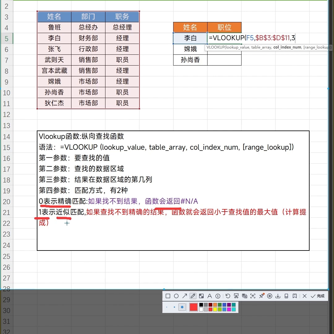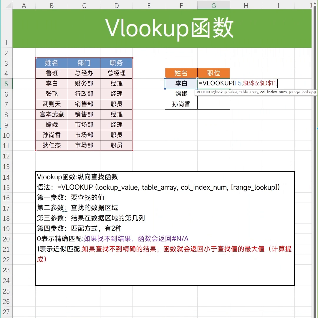 ·第一参数是查找值,我们直接点击姓名即可,即李白。我们需要根据李白来查找职位,因此查找值为李白。