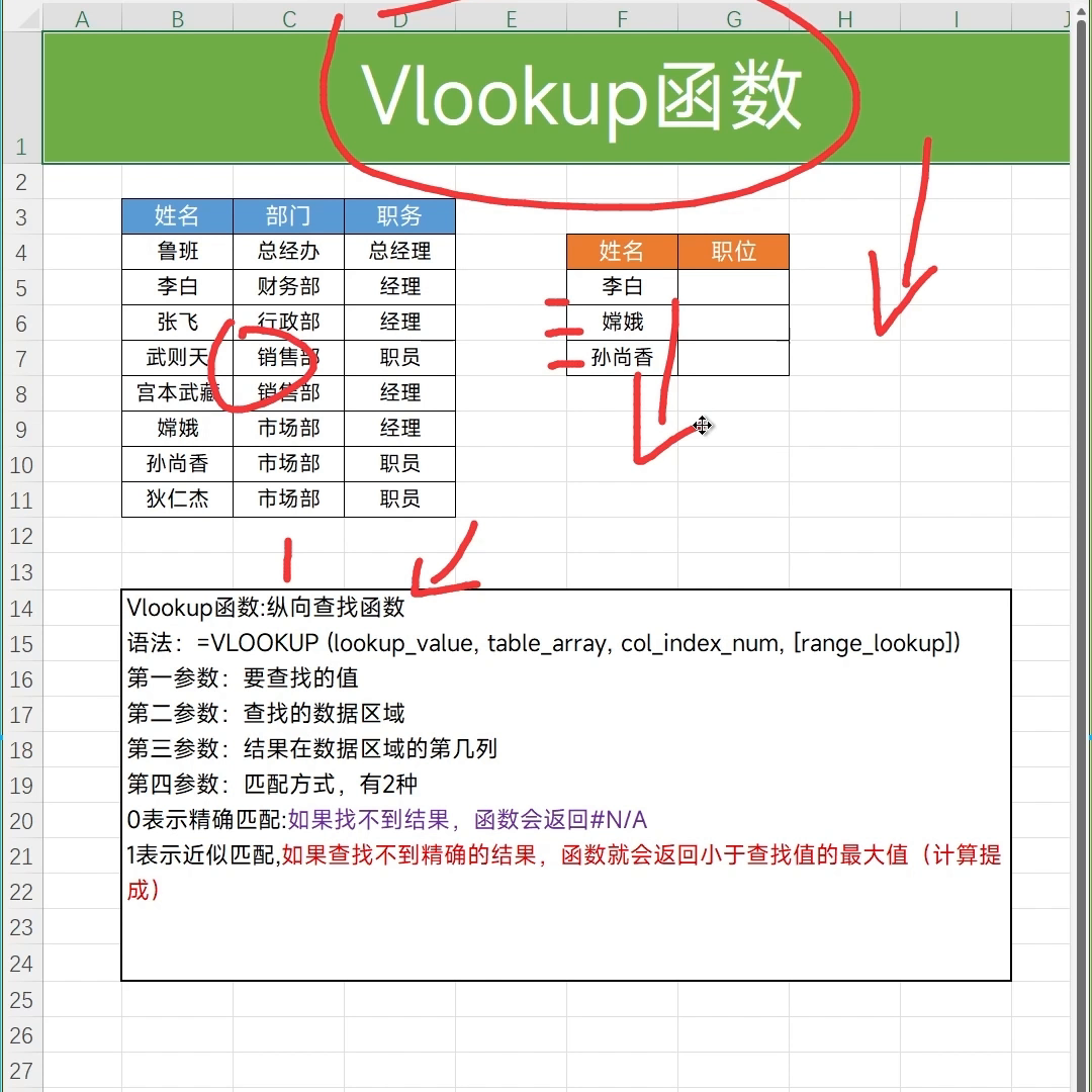 对于许多新粉丝的询问,今天我们将简单介绍VLOOKUP函数的用法。VLOOKUP函数是一种用于数据查询的函数,它可以根据查找值在数据表中找到对应的结果。例如,如果我们想在这个表格中找到李白、嫦娥、孙尚香的职位,这就是一个典型的数据查询问题,我们可以使用VLOOKUP函数来解决。