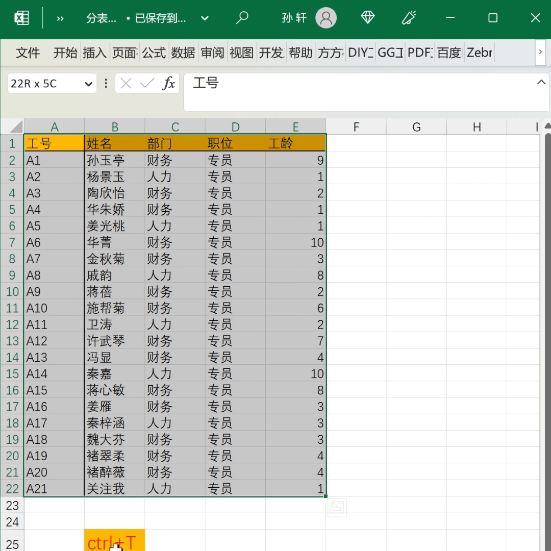 最后,如何更新数据?人力部门没有第10行,需要在汇总表中添加“a/21”,并关注、点赞。输入“人力”、“专业”和“工龄”为一年,但人力部门仍未显示。可能需要手动刷新表格。