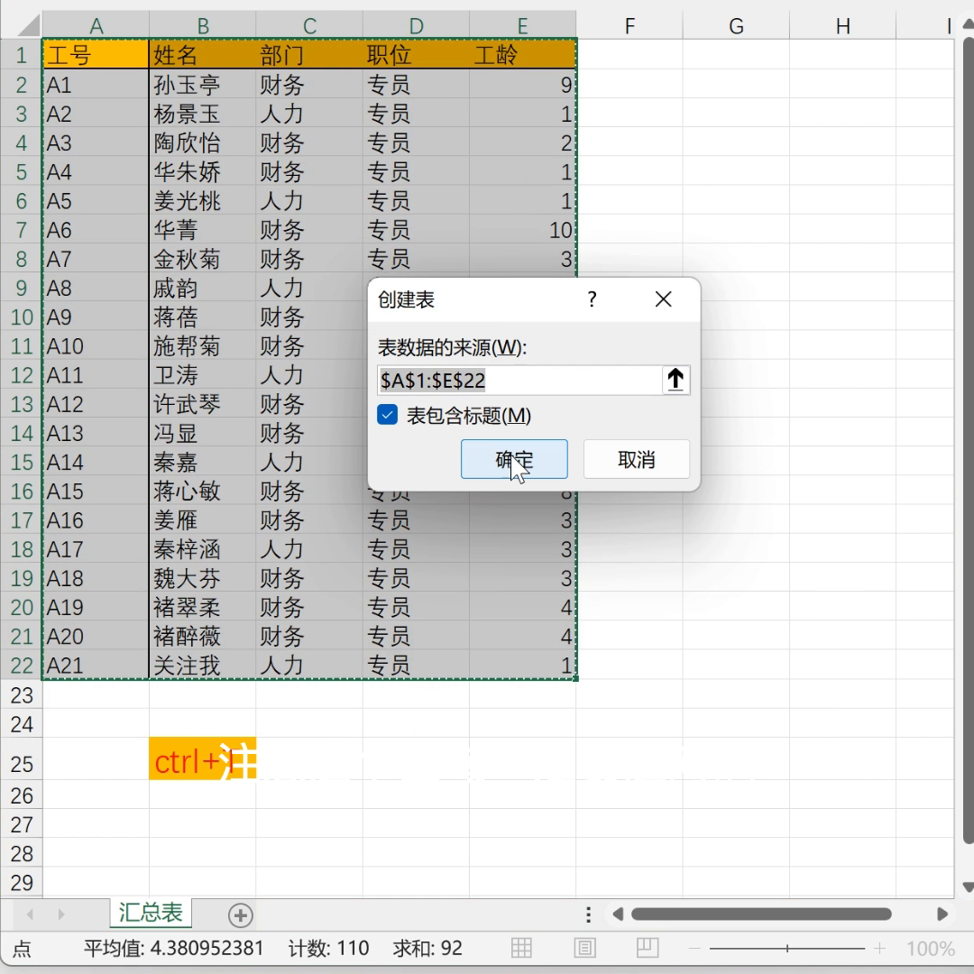 要如何实现这一目标呢?首先,选中总表,按下Ctrl+T键创建超级表。需要确保选择的区域正确,然后点击确定。