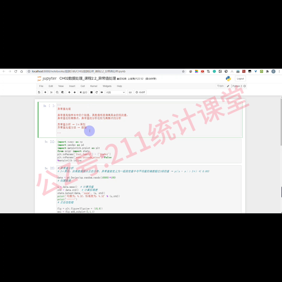 就把这今天就是先讲删除的方法来把这些异常值去除,同样的导入一些需要常用的一些库,这里就是也要用到。然后首先就是运行一下导入这些库,有人当派panas,普拉利不?这个就是统计计算的一个库,后续会讲。