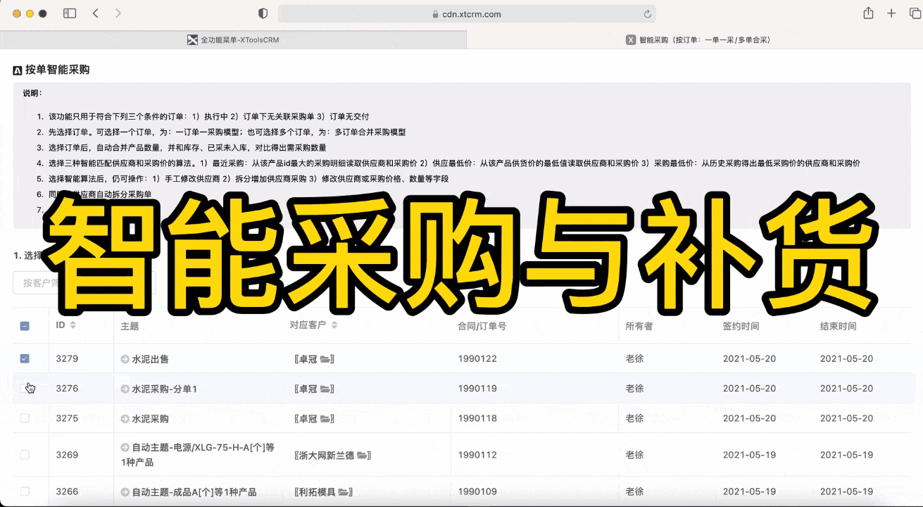 1.智能采购量(按客户筛选订单,勾选一个或多个订单):