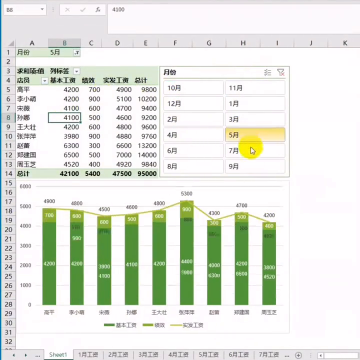 ·点击切片器,即可查看电源的工资情况,并通过图表进行可视化展示。下面是操作方法: