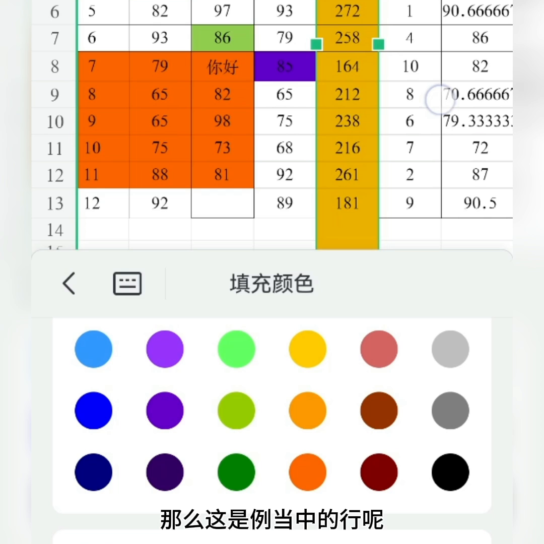 ·除了选择单个单元格,还可以在表格上方的“行号”和“列标”中选择需要添加颜色的单元格。