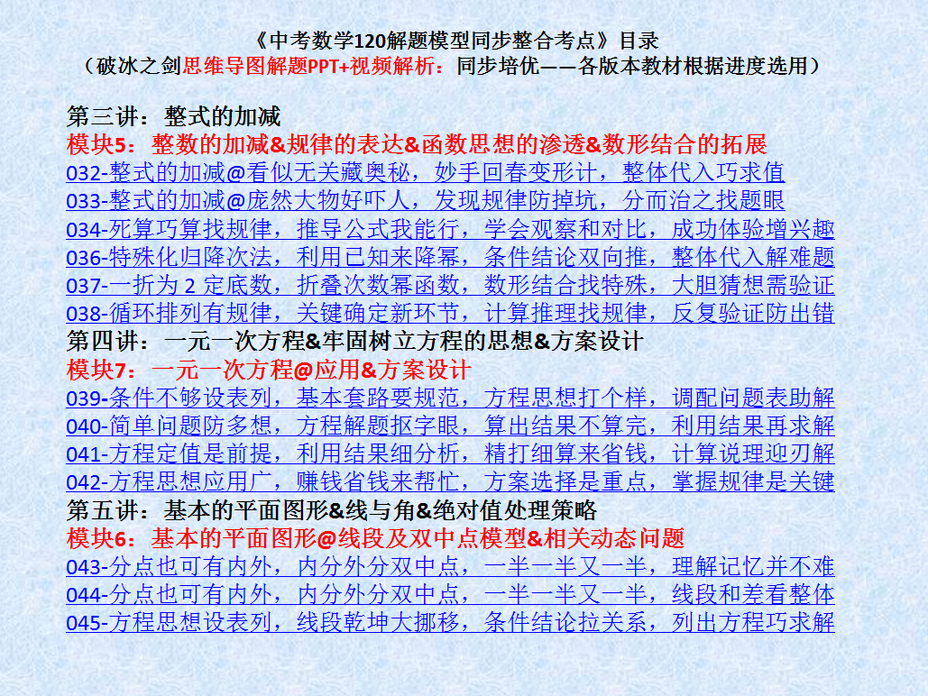5.将初中数学解题常用的套路整合为120个解题模型,用四大模块,十部思维导图课件辅之以配套的680集视频,从是什么?为什么?怎么做?如何想到四个维度进行了详细的剖析和解读。
