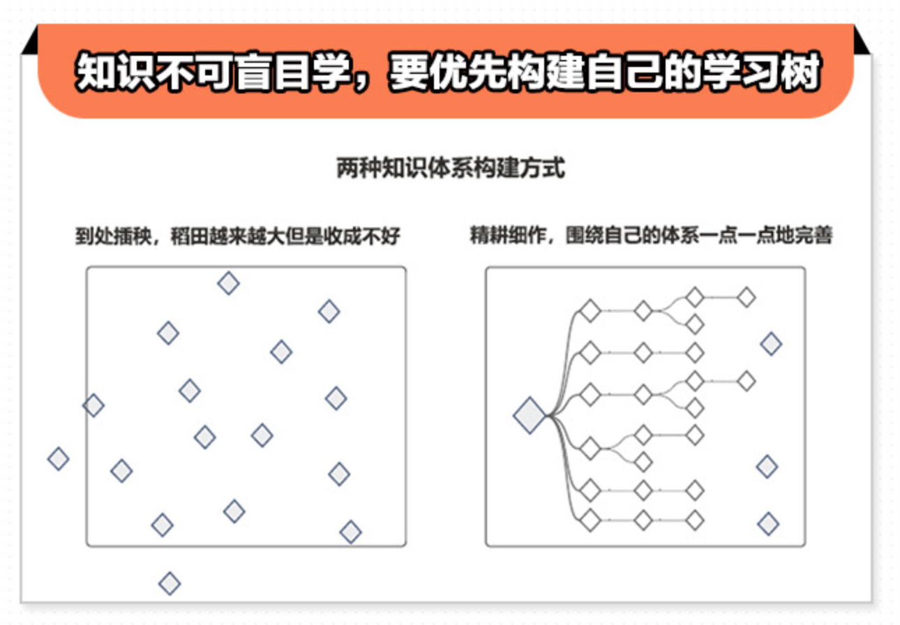 这样一来,我们就可以很清楚地知道当下的自己最需要学习什么,以及如何学习。这就避免了我们在学习过程中的盲目跟风,也解决了我们「不知道学什么」的问题,