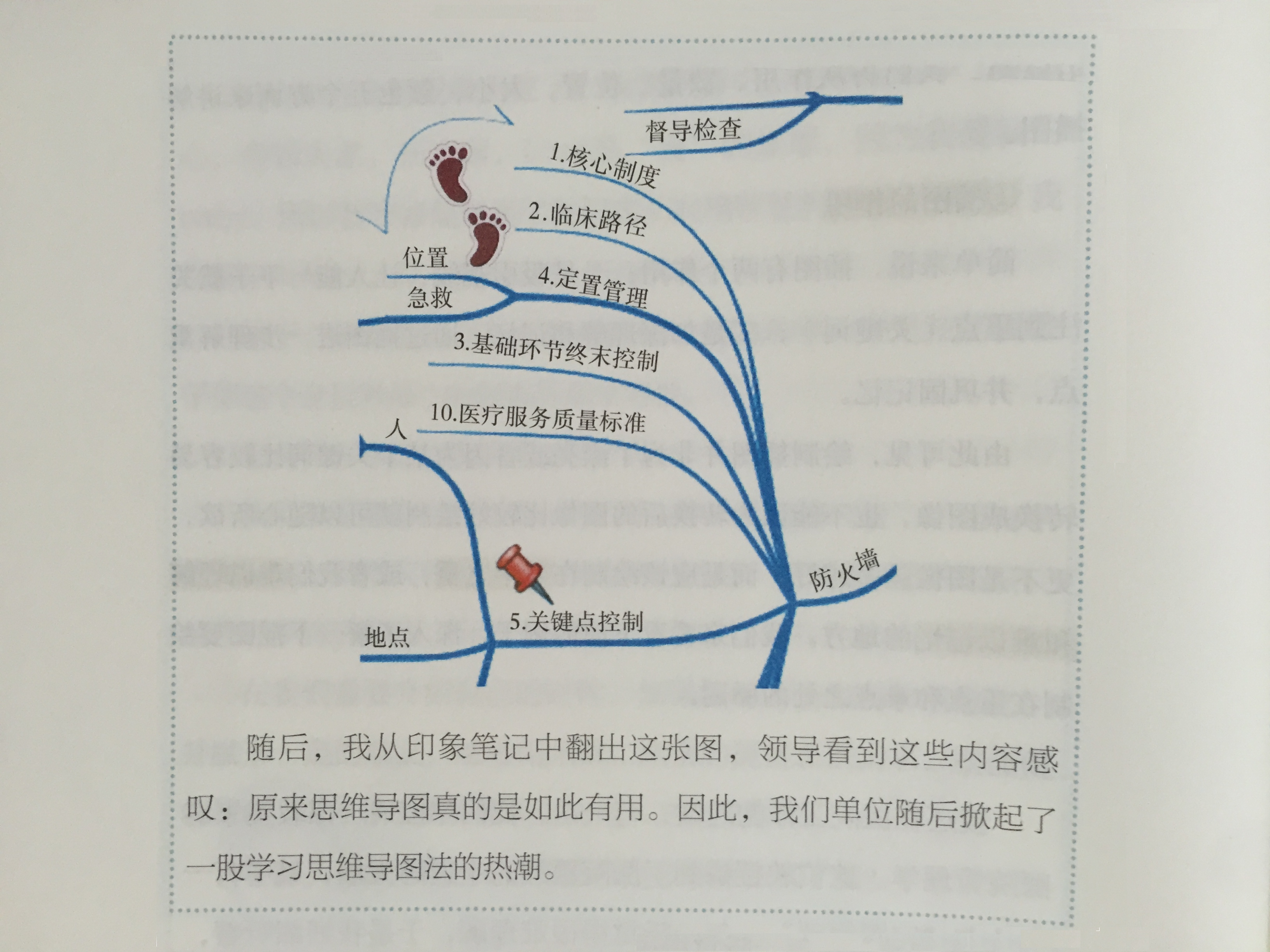 于是王玉印老师在当时的笔记上画了一对大大的红脚丫,“大”和“红色”都强调这个词是重点,“脚丫”的图形则提示这个词的释义,帮助加深理解和记忆。过了几个月,在突然被提问到“定置管理”的知识时,她马上回想起笔记上那对红色大脚丫,于是轻松复述出它的准确意思。