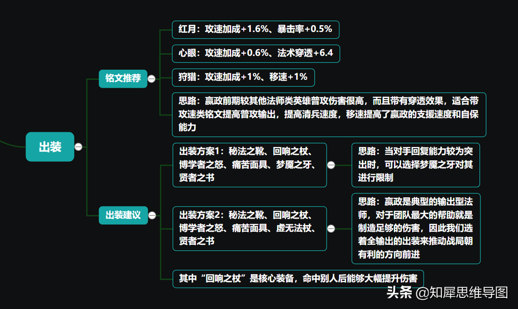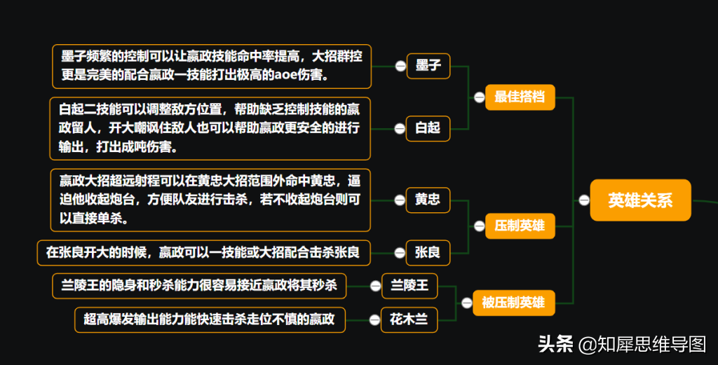 王者荣耀里的嬴政因为获取方式只能是通过氪金来获取,一直被网友戏称为身价最贵的男人,嬴政作为一个中路法师,凭借其优越的机制,一直是一个妥妥的输出机器,那么嬴政究竟应该怎么玩?有哪些注意点呢?下面我们就通过思维导图来了解一下这个英雄。