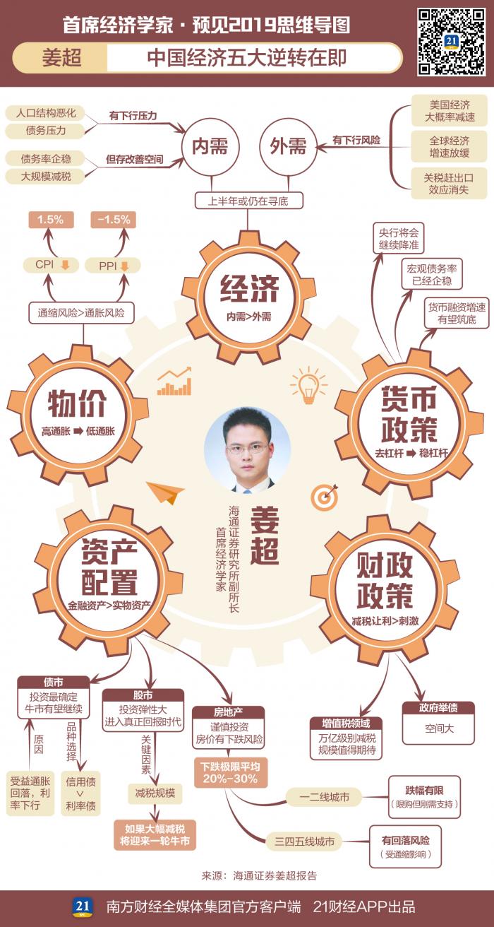 海通证券研究所副所长、首席经济学家姜超认为,2019年中国经济将发生五大逆转: