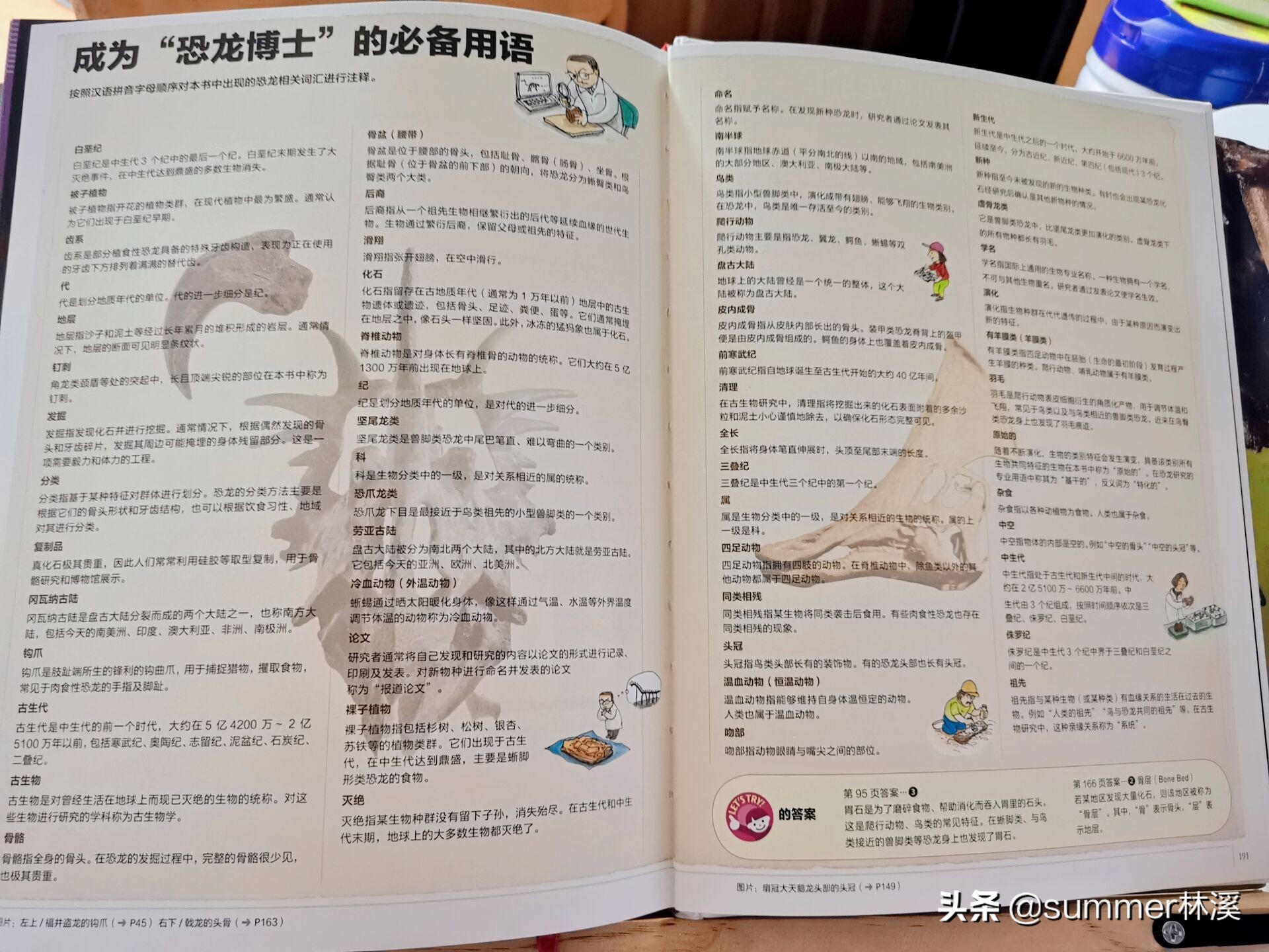另外还介绍了化石从发掘到展示的过程 98,估计有些小朋友看完这本书会萌生成为古生物学家的想法。