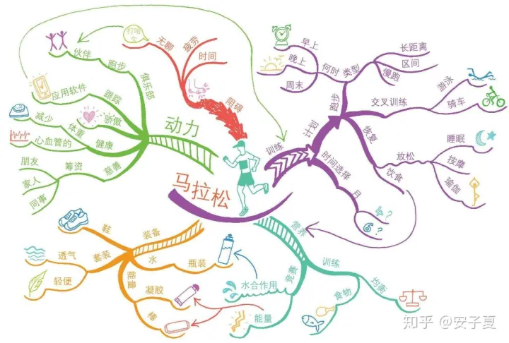 使用思维导图规划马拉松训练,来自《思维导图完整手册》东尼·博赞,中信出版集团