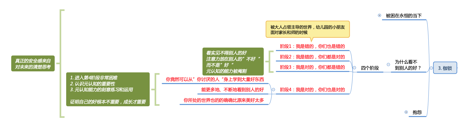 大多数人是在第2、3阶段徘徊,别人的”好“会让自己感觉到焦虑不安,被比下去了,这是元认知的被阉割,永远进不了第4阶段。