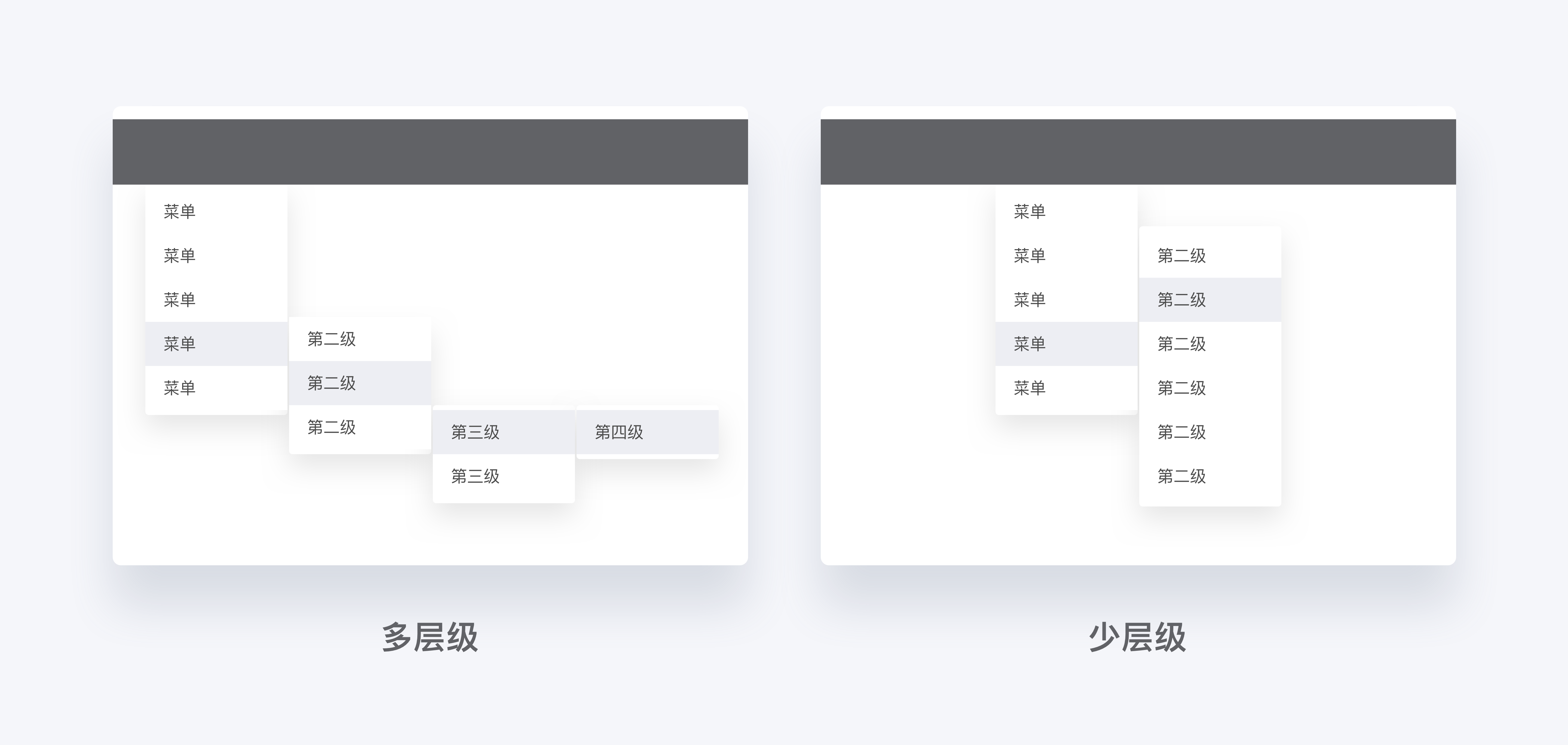 菜单广度:导航菜单中每一个层级包含的菜单项数目为广度