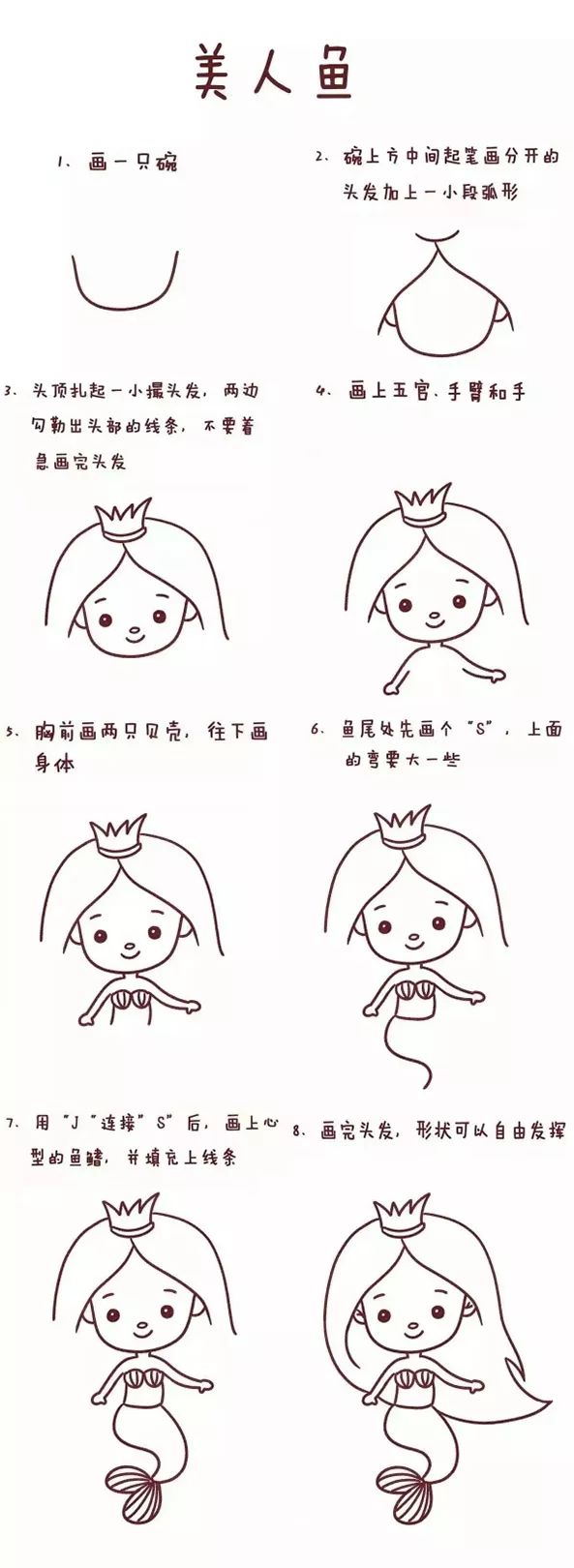 美人鱼系列简笔画