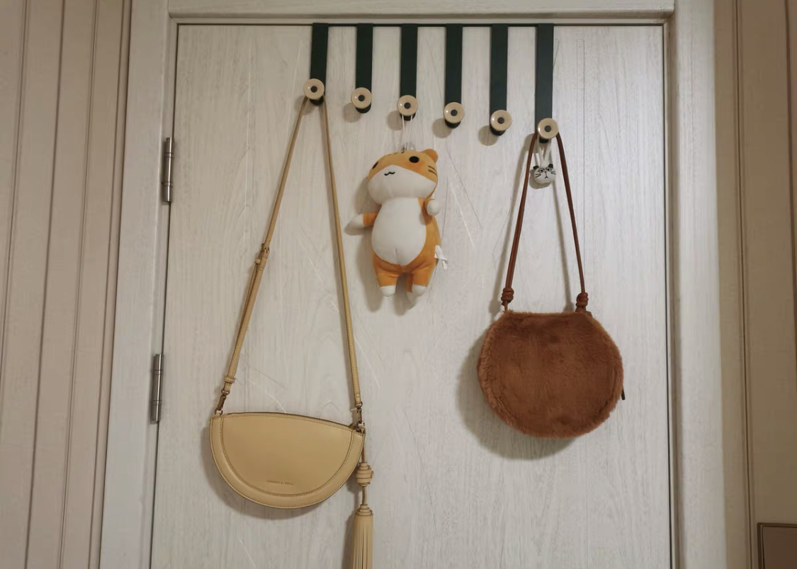 一是通过门后挂钩,卧室门后的挂钩,可以用来挂偶尔背的包,也可以挂隔夜衣。