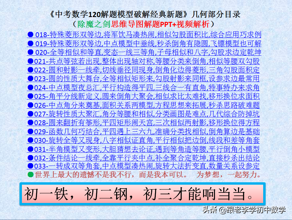 2.这几年这类题目的第一问难度略有增加,是一个趋势,一定不能“死”在这里——数学题的解答和我们生活中遇到的事情类似:思路复杂的计算简单;计算复杂的思路简单,世间万物讲究个平衡——几何综合题的难度相对较大,也不易拿满分