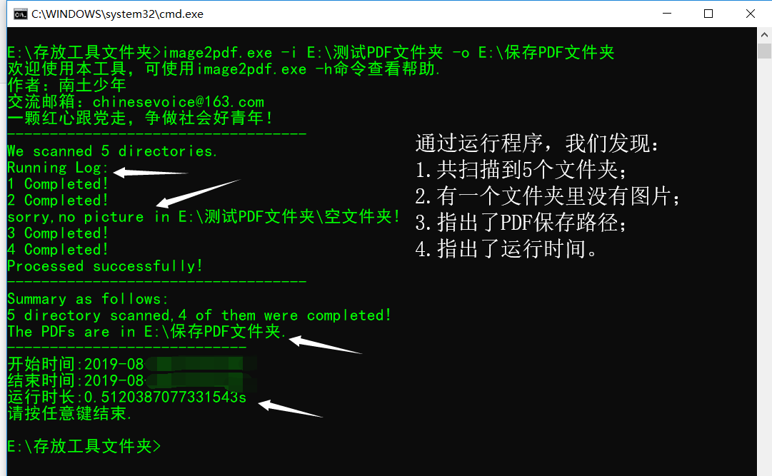 注意:image2pdf.exe -i E:测试PDF文件夹 -o E:保存PDF文件夹
