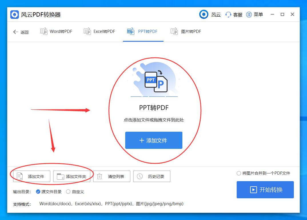 点击中间的“添加文件”将所需转换成PDF文件的PPT导入。