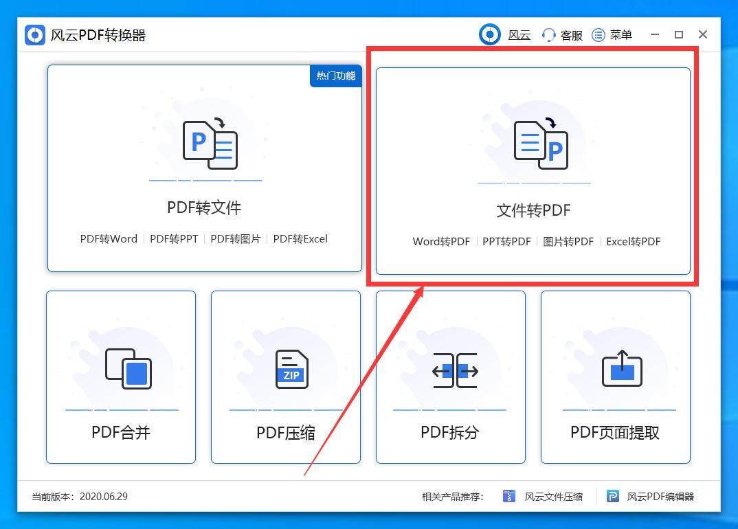 打开工具主界面,点击“文件转PDF”选项,进入操作界面。在上方功能区内找到“PPT转PDF“选择