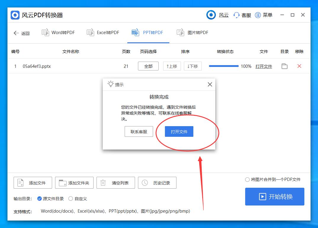 完成转换后,弹窗跳出,提示我们转换完成,点击“打开文件”即可看到转换后的文件