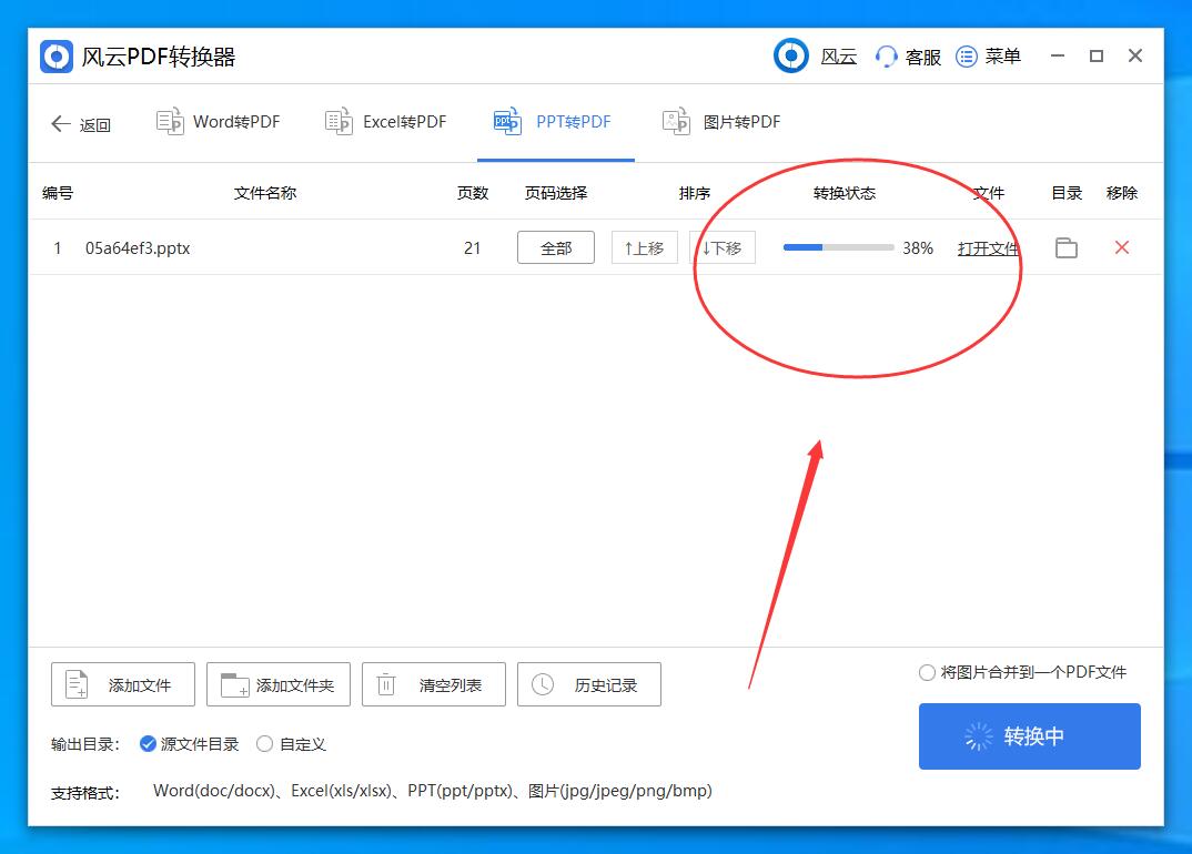 设置完毕之后,点击“开始转换”选项,稍等一会,PPT就将转换成PDF。