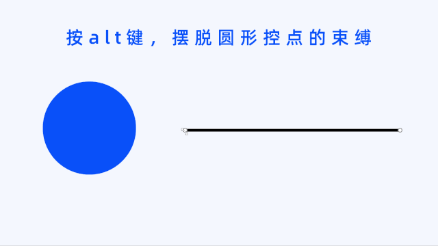 其实很简单,我们只需要按住 alt 键,再拖动直线,就能摆脱圆形控点的束缚,想拉哪里就拉哪里!