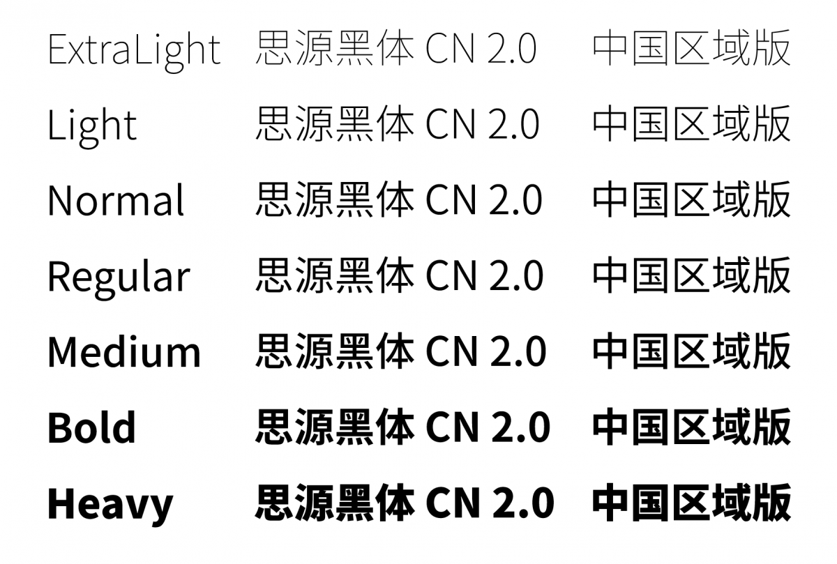 思源黑体有七种字重,也就是7种粗细,足够满足日常绝大多数设计需求了。