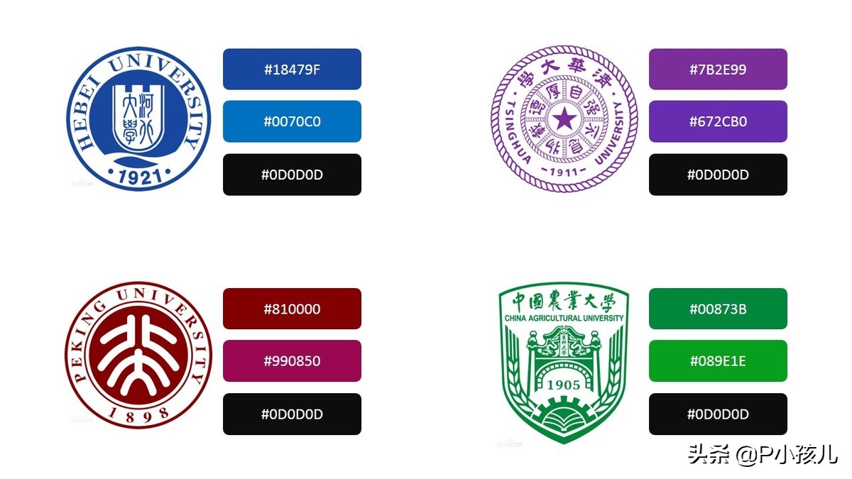 我又选了几个有代表性的学校,从它们的LOGO色调里确定了配色方案,大家看一下思路就好
