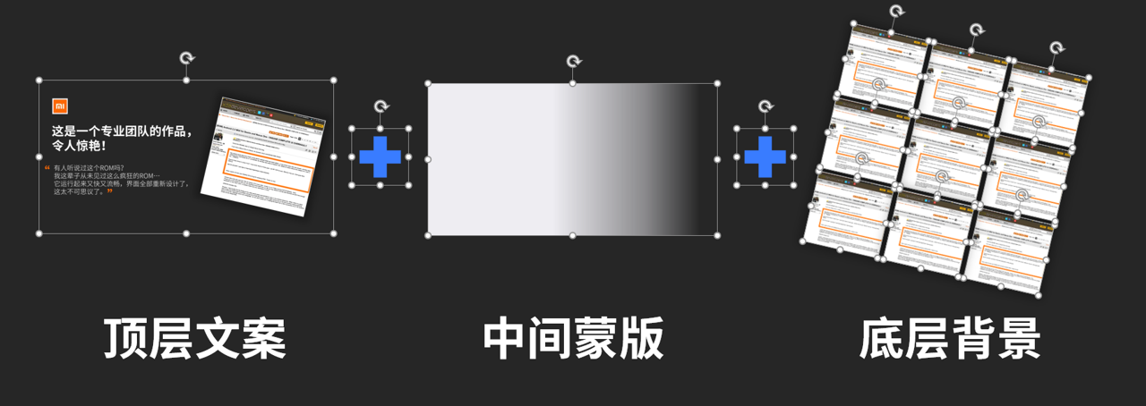 拆解一下上面这张PPT,你会发现它是由三个部分组成的,分别是最底层的背景图片+中间的渐变蒙版+最顶层的文案。