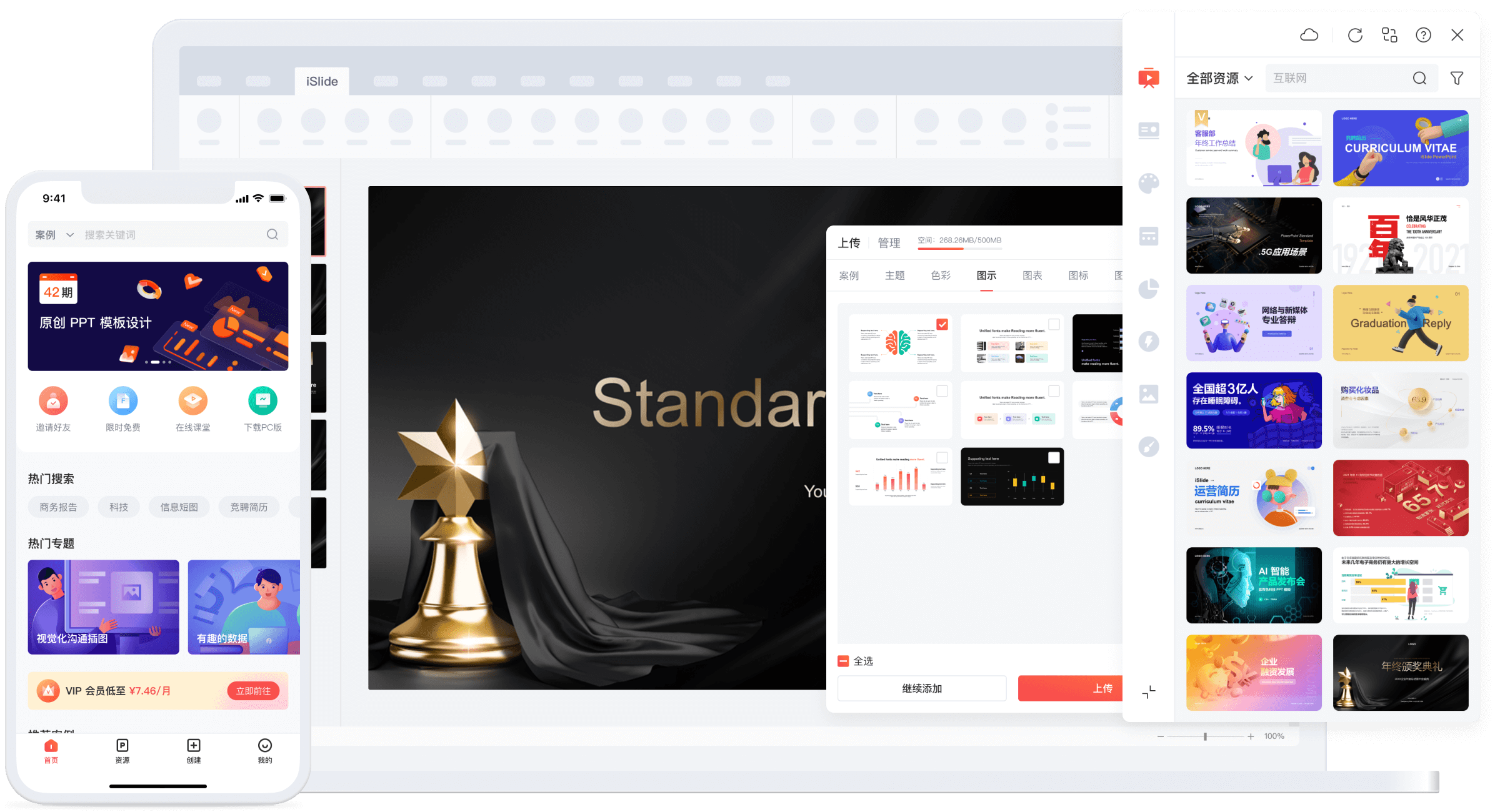 iSlide 是一款基于 PPT 的插件工具,包含 38 个设计辅助功能,8 大在线资源库,超 30 万专业 PPT 模板/素材 支持 macOS 和 Windows 系统(兼容 Office 和 WPS)