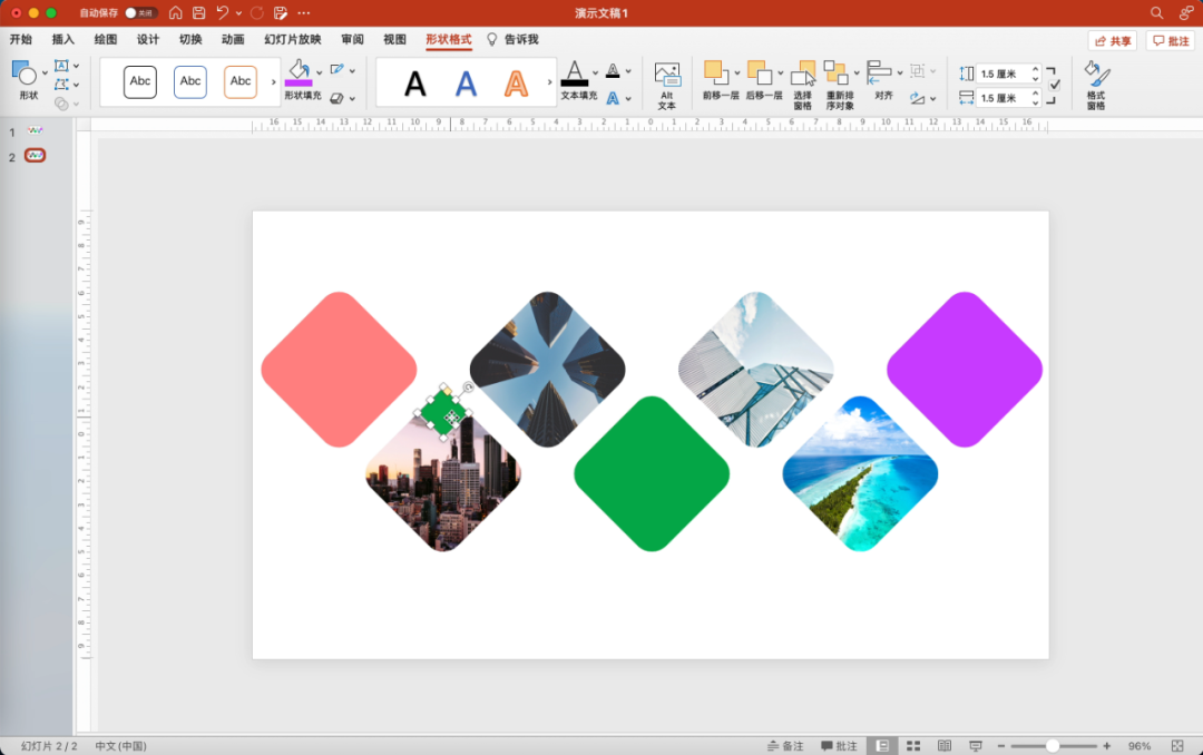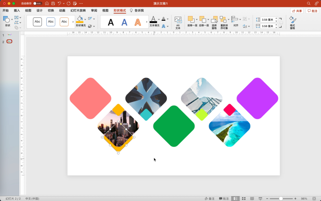 这款PPT是以形状和图片的混搭为思路制作的,