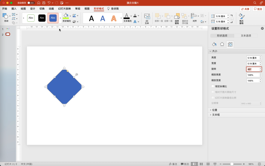 在页面中插入圆角矩形,将它旋转45度。